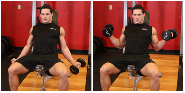 7 : Alternate Seated Dumbbell Curl – Bài tập cơ tay trước Cuốn tạ đôi luân phiên