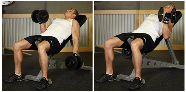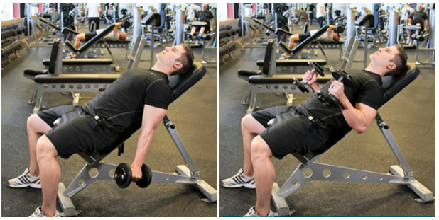 8 : Incline Dumbbell Curl – Bài tập cơ tay trước Nằm ghế nghiêng cuốn tạ đôi
