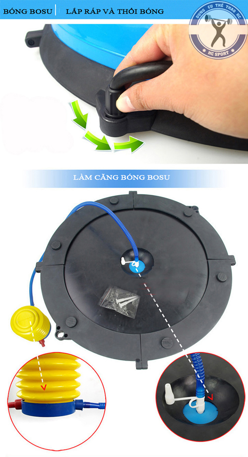 - Bộ sản phẩm bao gồm 1 bóng Bosu + bơm đi kèm.