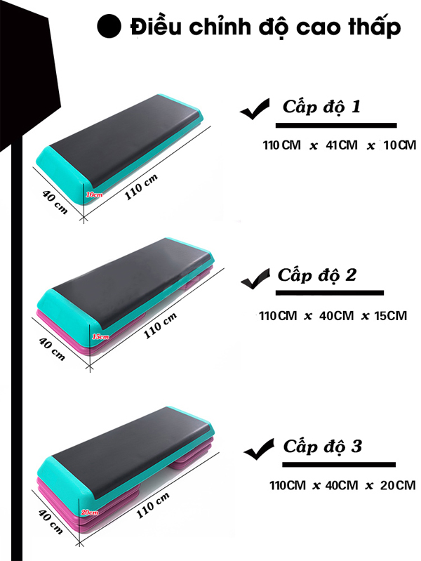 - Bục tập Aerobic 840 có thể thay đổi 3 cấp độ: