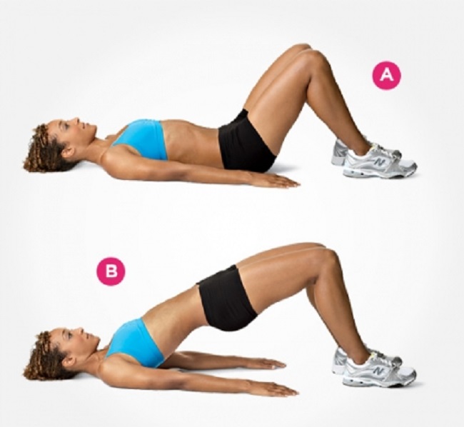 Trước nhất Bạn nằm trên lưng với cánh tay và vai được áp sát dưới sàn vững chắc. thong thả cong đầu gối và mông lên mức có thể. Sau ấy uốn cong lưng để xương chậu được đẩy lên trên. Giữ tư thế này ít ra 20 giây và tiếp diễn lặp đi lặp lại động tác này