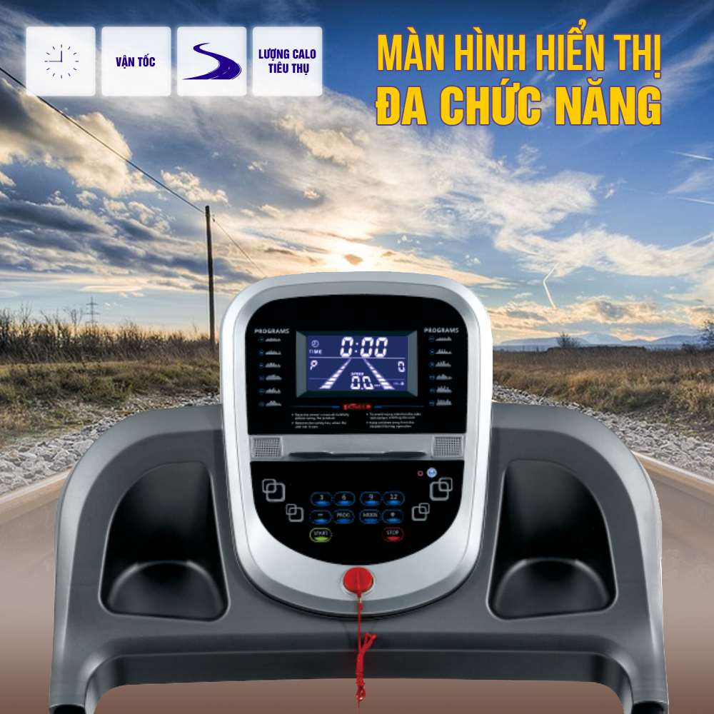 - Màn hình: LCD (hiển thị: tốc độ, quãng đường, nhịp tim, lượng calo tiêu thụ)