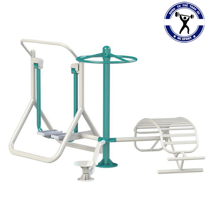 - Cụm Lưng bụng, Xoay eo, Đi bộ Vifa 723334 hỗ trợ 3 người tập cùng một thời điểm và phù hợp lắp đặt cho sân vườn ngoài trời.