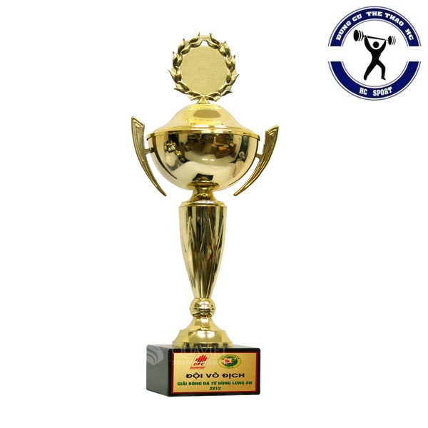 - Chân đế cúp làm từ đá hoa cương đen. Đỉnh cúp gắn vòng tròn nguyệt quế, bề mặt nhẵn bóng đẹp mắt. Hai quai thiết kế thẳng theo chiều dọc thân cúp.