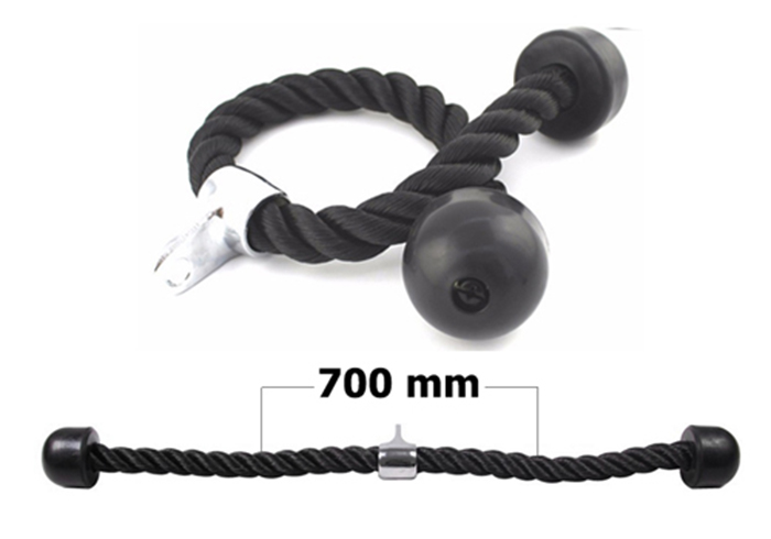 - Dây thừng kéo xô được làm từ sợi tổng hợp cực bền, 2 đầu dây bọc cao su đặc và giữa sợi dây có chốt làm bằng inox để kết nối với thiết bị luyện tập dễ dàng.