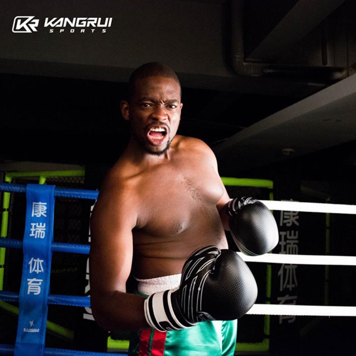 - Găng tay Boxing Kangrui KB334 được thiết kế đẹp mắt, đường may chắc chắn từ chất liệu da PU cao cấp và bên trong chống sốc cực êm. Găng Boxing có form rất ôm tay và phần khóa cổ tay làm từ khóa dính chắc chắn.