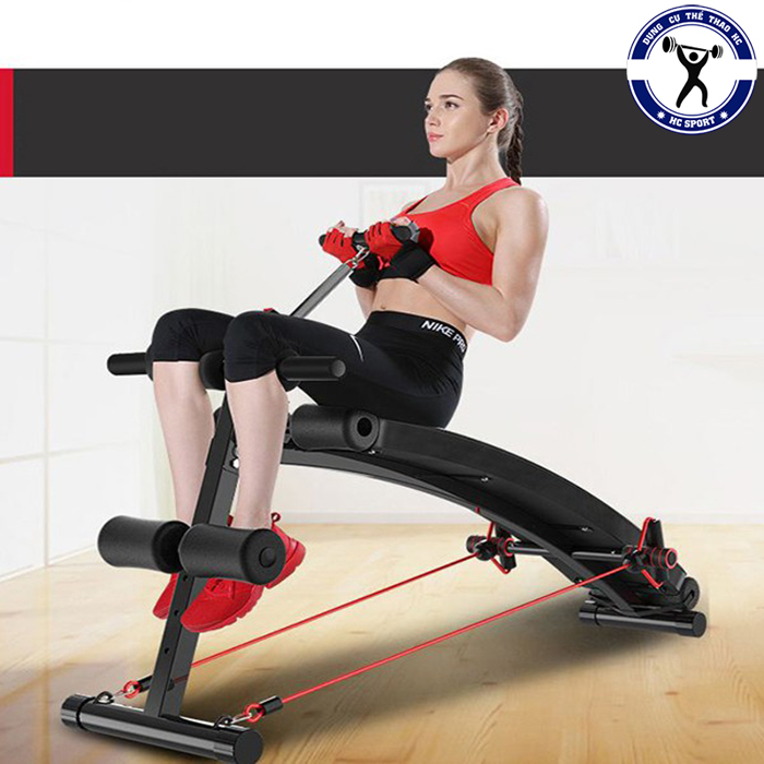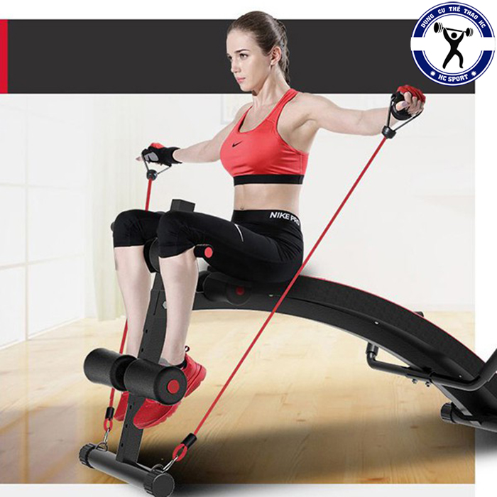 + Ngoài chức năng gập bụng thì ghế tập bụng còn được tích hợp thêm tay cầm hỗ trợ hít đất, 2 dây kéo đàn hồi và bộ phận tay kéo lò xo giúp tập thể lực hiệu quả.