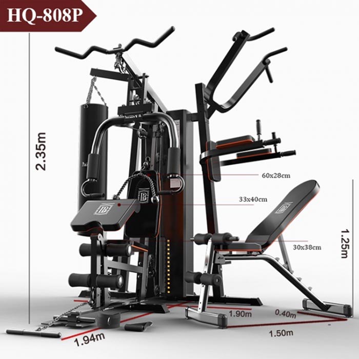 - Giàn tạ đa năng HQ-808P thiết kế chắc chắn, hỗ trợ tập Gym hiệu quả với hơn 30 bài tập và 3 người tập cùng 1 thời điểm. Cấu tạo chi tiết của giàn tạ HQ-808P gồm: