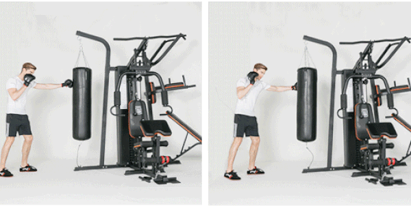 + Bao cát đấm bốc đi kèm giàn tạ được may từ da PU, có chiều cao 1.3m và nhồi sẵn với tổng trọng lượng bằng 28 kg. Bao cát được treo sẵn trên giá treo giúp hỗ trợ bạn tập khởi động hoặc tập Boxing.