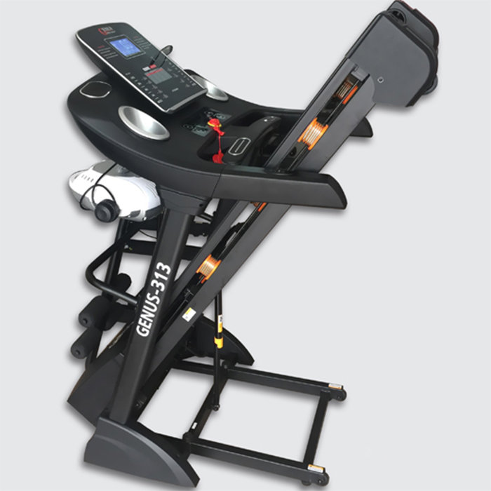 - Máy chạy bộ điện Genus-313 chuyên sử dụng tập luyện cho gia đình với các bài tập gồm: Tập chạy bộ, đi bộ, Tập rung, massage, Tập gập bụng.