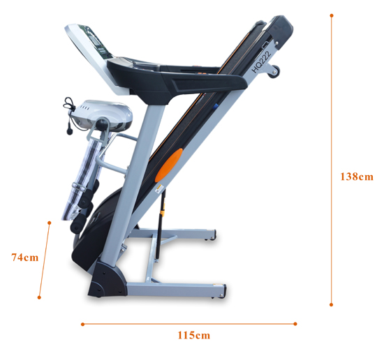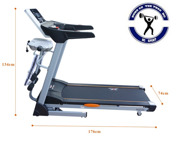 - Sau khi lắp đặt hoàn chỉnh máy chạy bộ điện HQ 222 có kích thước: 176 x 74 x 134 cm. Đảm bảo không gian trong ngôi nhà của bạn.