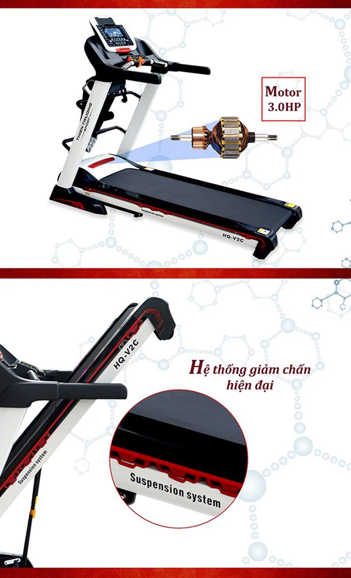 - Máy chạy bộ điện đa năng HQ-V2C được thiết kế đẹp mắt, hỗ trợ nhiều bài tập và phù hợp sử dụng để tập thể dục tại nhà cho gia đình. Thông số cơ bản của máy chạy bộ HQ-V2C gồm: