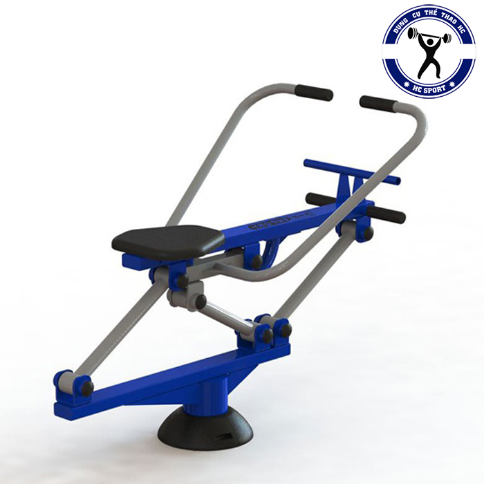- Cách tập: Ngồi trên thiết bị, hai tay nắm cần phía trước và hai chân đặt trên hai thanh phía dưới. Dùng tay kéo về phía sau, hai chân duỗi thẳng và toàn thân ngả về phía sau.