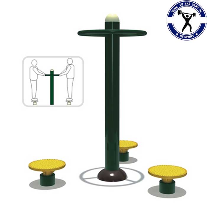 - Máy tập xoay eo 3 người HQ-626 lắp đặt bằng cách chôn cố định xuống nền và hỗ trợ các bài tập giúp rèn luyện khả năng vận động của hông, eo giúp vòng eo săn chắc tự nhiên.