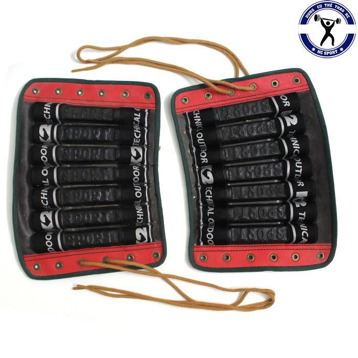 - Bộ tạ đeo chân gồm 2 băng, mỗi băng gồm 7 thanh gang, trọng lượng cả bộ 4kg