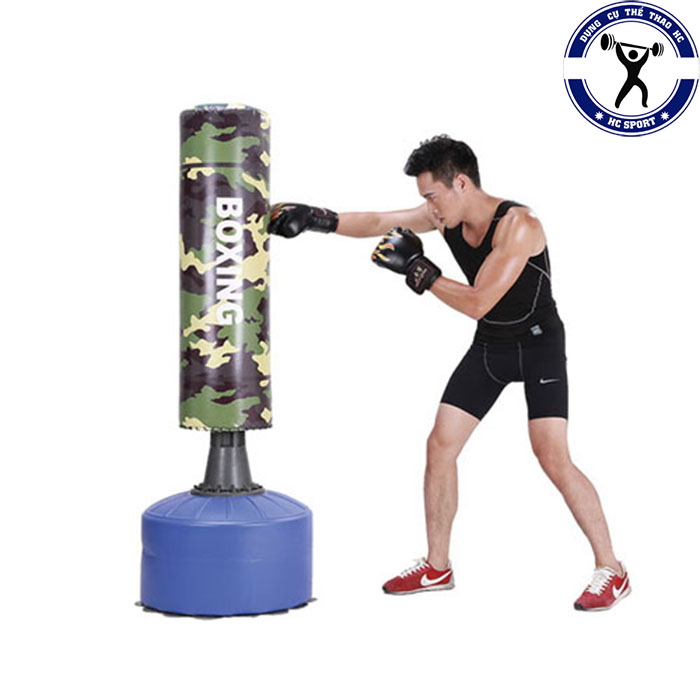 - Trụ đấm bốc nặng 35 kg và đế trụ có dung tích 0.35m³. Với đế trụ thì bạn dùng nước hoặc cát đổ vào làm đối trọng. Khi đổ nước thì đế trụ nặng khoảng 110 kg và đổ cát đế trụ nặng khoảng 160 kg.