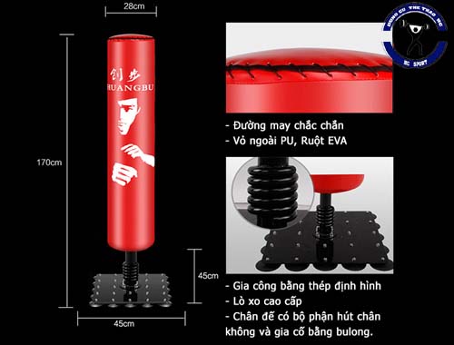 - Trụ đấm, đá lò xo Lý Tiểu Long được thiết kế chắc chắn, bắt mắt và vô cùng tiện dụng.