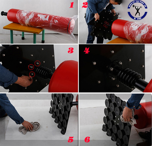 - Đế trụ đấm bốc dùng bản mã có các giác mút hút chặt xuống nền hoặc bạn có thể bắt bulong nền nếu muốn chắc chắn hơn nữa. Chân đế có bộ phận hút chân không giúp sản phẩm đứng vững chắc hơn.