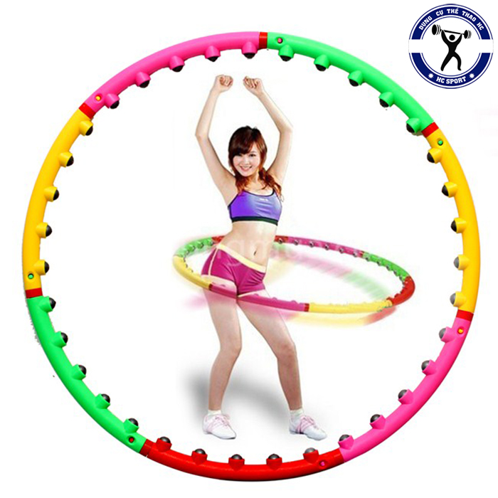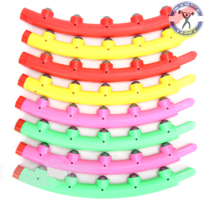- Vòng lắc eo bằng nhựa chính hãng được làm từ chất liệu nhựa cao cấp, ghép nối với nhau từ 8 miếng rời và có hạt massage bên trong giúp thư giãn khi tập.