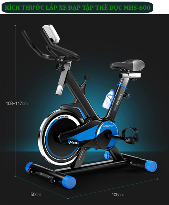 - Kích thước lắp xe đạp tập thể dục MHS-600 : 105 x 50 x 117 cm (dài x rộng x cao).