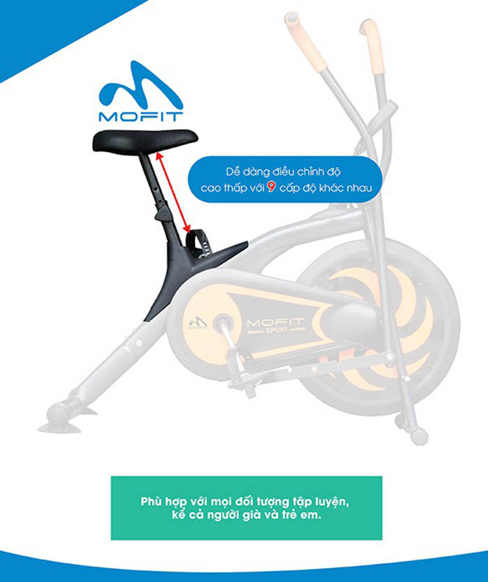 - Xe đạp tập thể dục Mofit MO-2060 không chỉ giúp người trẻ tập vận động rèn luyện sức khỏe, giảm béo và tăng cường cơ bắp mà nó còn giúp những người bị tai biến, người lớn tuổi cải thiện tình hình sức khỏe đáng kể. Không chỉ dùng cho bản thân, xe đạp tập thể dục Mofit còn là một món quà rất ý nghĩa dành tặng cho bố mẹ và người thân.
